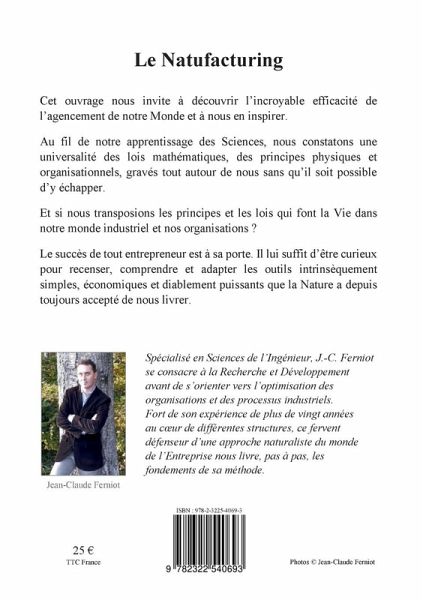 Cet ouvrage nous invite à découvrir l'incroyable efficacité de l'agencement de notre Monde et à nous en inspirer.Au fil de notre apprentissage des Sciences, nous constatons une universalité des lois mathématiques, des principes physiques et organisationnels, gravés tout autour de nous sans qu'il soit possible d'y échapper.Et si nous transposions les principes et les lois qui font la Vie dans notre monde industriel et nos organisations ?Le succès de tout entrepreneur est à sa porte. Il lui suffit d'être curieux pour recenser, comprendre et adapter les outils intrinsèquement simples, économiques et diablement puissants que la Nature a depuis toujours accepté de nous livrer.