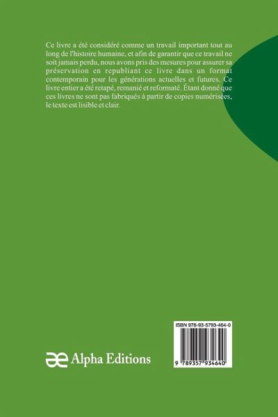 Le notaire de Chantilly, est un livre classique et rare, qui a été considéré comme important tout au long de l'histoire de l'humanité, et pour que cet ouvrage ne soit jamais oublié, chez Alpha Editions, nous avons fait des efforts pour sa préservation en rééditant ce livre dans un format moderne pour les générations présentes et futures. . Tout ce livre a été reformaté, retapé et repensé. Ces livres ne sont pas constitués de copies numérisées de leur ¿uvre originale et leur texte est donc clair et lisible. Ce livre remarquable s'inscrit dans les genres de Language and Literatures, Romance literatures