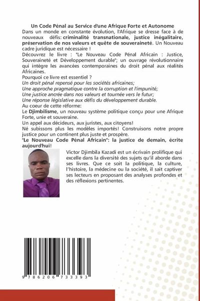 Un Code Pénal au Service d'une Afrique Forte et AutonomeDans un monde en constante évolution, l'Afrique se dresse face à de nouveaux défis: criminalité transnationale, justice inégalitaire, préservation de nos valeurs et quête de souveraineté. Un Nouveau cadre juridique est nécessaire !Découvrez le livre : "Le Nouveau Code Pénal Africain : Justice, Souveraineté et Développement durable"; un ouvrage révolutionnaire qui intègre les avancées contemporaines du droit pénal aux réalités Africaines.Pourquoi ce livre est essentiel ?Un droit pénal repensé pour les sociétés africaines;Une approche pragmatique contre la corruption et l'impunité;Une justice ancrée dans nos valeurs et tournée vers le futur;Une réponse législative aux défis du développement durable.Au coeur de cette réforme:Le Djimbilisme, un nouveau système politique conçu pour une Afrique Forte, unie et souveraine.Un appel aux décideurs, aux juristes, aux citoyens!Né subissons plus les modèles importés! Construisons notre propre justice pour un continent plus juste et prospère."Le Nouveau Code Pénal Africain": la justice de demain, écrite aujourd'hui!
