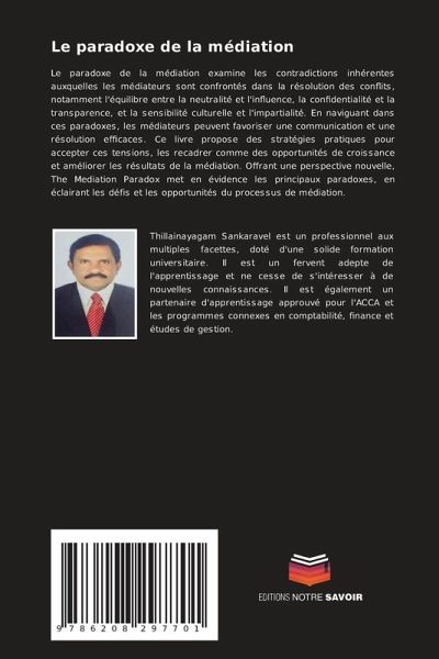 Le paradoxe de la médiation examine les contradictions inhérentes auxquelles les médiateurs sont confrontés dans la résolution des conflits, notamment l'équilibre entre la neutralité et l'influence, la confidentialité et la transparence, et la sensibilité culturelle et l'impartialité. En naviguant dans ces paradoxes, les médiateurs peuvent favoriser une communication et une résolution efficaces. Ce livre propose des stratégies pratiques pour accepter ces tensions, les recadrer comme des opportunités de croissance et améliorer les résultats de la médiation. Offrant une perspective nouvelle, The Mediation Paradox met en évidence les principaux paradoxes, en éclairant les défis et les opportunités du processus de médiation.