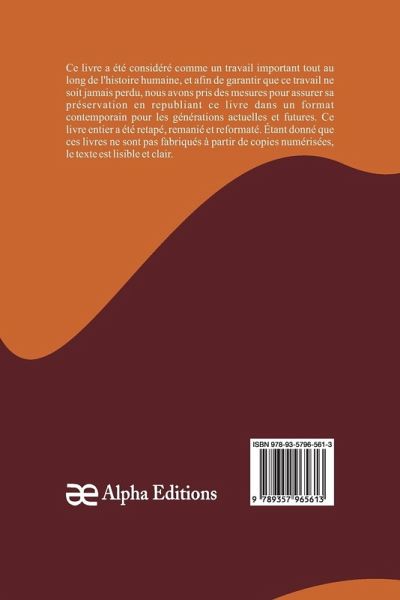 Le parfum de la Dame en noir, un livre classique, a été considéré comme important tout au long de l'histoire de l'humanité, et pour que cet ouvrage ne soit jamais oublié, chez Alpha Editions, nous avons fait des efforts pour sa préservation en rééditant ce livre dans un format moderne pour les générations présentes et futures. Tout ce livre a été reformaté, retapé et conçu. Ces livres ne sont pas constitués de copies numérisées de leur ¿uvre originale et le texte est donc clair et lisible.