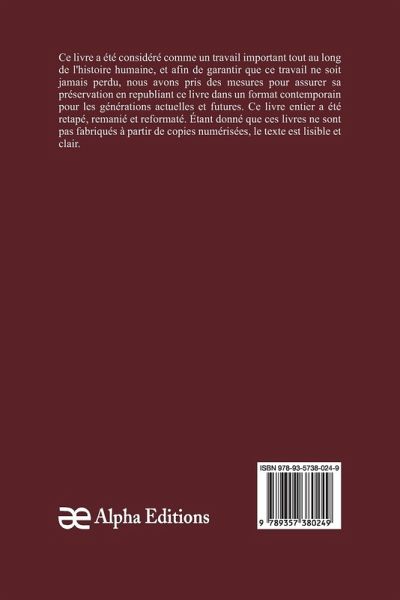 Le parfum des îles Borromées, a été considérée comme importante tout au long de l'histoire de l'humanité. Dans un effort pour s'assurer que ce travail ne soit jamais perdu, nous avons pris des mesures pour assurer sa préservation en republiant ce livre dans un format moderne pour les générations actuelles et futures. Ce livre complet a été retapé, remanié et reformaté. Comme ces livres ne sont pas des scans des publications originales des auteurs, le texte est lisible et clair.