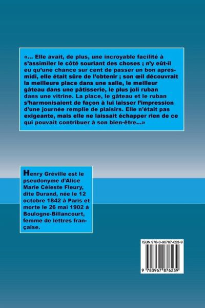 Henry Gréville, de son vrai nom Alice Marie Céleste Durand née Fleury, née le 12 octobre 1842, à Paris, et morte le 26 mai 1902, à Boulogne-Billancourt, est une femme de lettres française. Fille de Jean Fleury, écrivain haguais et professeur à Paris, elle l'accompagne en Russie quand il devient lecteur en littérature française à l'université impériale de Saint-Pétersbourg. Elle y étudie les langues et les sciences avant d'y épouser en 1857, Émile Durand, professeur de droit français et amateur d'art. Elle commence à écrire dans le Journal de Saint-Pétersbourg, puis, de retour en France, en 1872, elle prend le nom de plume d'Henry Gréville, en référence au village de ses parents. Elle écrit des romans sur la société russe et publie dans la Revue des Deux Mondes, le Figaro, la Nouvelle Revue, le Journal des débats, le Temp Auteur prolifique, s'essayant au théâtre comme aux nouvelles, à la poésie comme au roman, elle a été à son époque, un écrivain à succès. Son manuel pour l'Instruction morale et civique pour les jeunes filles a été réédité 28 fois entre 1882 et 1891.
