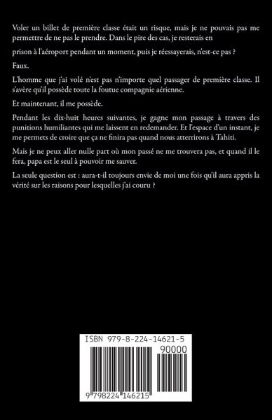 Voler un billet de première classe était un risque, mais je ne pouvais pas me permettre de ne pas le prendre. Dans le pire des cas, je resterais en prison à l'aéroport pendant un moment, puis je réessayerais, n'est-ce pas ? Faux. L'homme que j'ai volé n'est pas n'importe quel passager de première classe. Il s'avère qu'il possède toute la foutue compagnie aérienne. Et maintenant, il me possède. Pendant les dix-huit heures suivantes, je gagne mon passage à travers des punitions humiliantes qui me laissent en redemander. Et l'espace d'un instant, je me permets de croire que ça ne finira pas quand nous atterrirons à Tahiti. Mais je ne peux aller nulle part où mon passé ne me trouvera pas, et quand il le fera, papa est le seul à pouvoir me sauver. La seule question est : aura-t-il toujours envie de moi une fois qu'il aura appris la vérité sur les raisons pour lesquelles j'ai couru ?