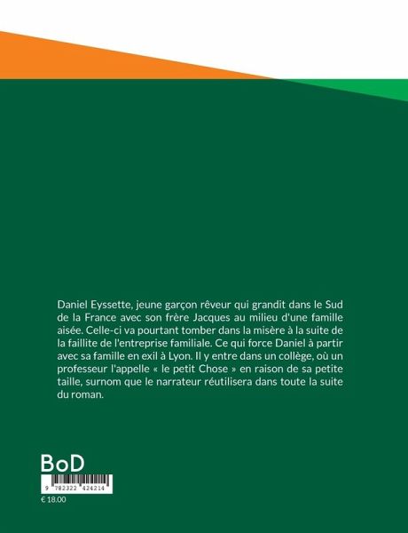 Daniel Eyssette, jeune garçon rêveur qui grandit dans le Sud de la France avec son frère Jacques au milieu d'une famille aisée. Celle-ci va pourtant tomber dans la misère à la suite de la faillite de l'entreprise familiale. Ce qui force Daniel à partir avec sa famille en exil à Lyon. Il y entre dans un collège, où un professeur l'appelle « le petit Chose » en raison de sa petite taille, surnom que le narrateur réutilisera dans toute la suite du roman.