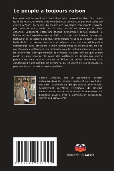 Les gens font de nombreux choix et certains peuvent sembler plus beaux qu'ils ne le sont en réalité ; les conséquences peuvent ne pas être celles qui étaient prévues au départ. La théorie des avantages comparatifs élaborée par David Riccardo, vieille de 200 ans, postule les avantages du libre-échange. Cependant, selon une théorie économique parfois ignorée (le théorème de Stolper-Samuelson, 1941), ce n'est pas toujours le cas, en particulier si les acteurs des flux commerciaux ne sont pas égaux. Ce livre traite de la concurrence entre acteurs inégaux dans une zone d'intégration économique sans précédent (l'Union européenne) et de certaines de ses conséquences inattendues, en particulier pour les acteurs mineurs que sont les économies d'Europe centrale et orientale. L'auteur affirme que si rien n'est fait pour inverser le cours des politiques de dévaluation interne persistantes dans la zone centrale de l'Union, ces petites économies sont condamnées à une position de périphérie qui les videra de leur ressource la plus précieuse : la main-d'oeuvre qualifiée !