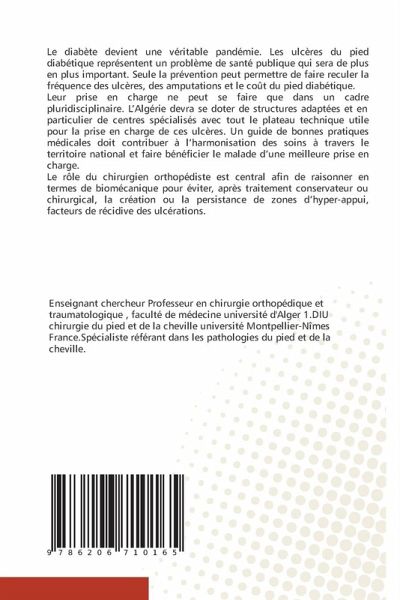 Le diabète devient une véritable pandémie. Les ulcères du pied diabétique représentent un problème de santé publique qui sera de plus en plus important. Seule la prévention peut permettre de faire reculer la fréquence des ulcères, des amputations et le coût du pied diabétique.Leur prise en charge ne peut se faire que dans un cadre pluridisciplinaire. L'Algérie devra se doter de structures adaptées et en particulier de centres spécialisés avec tout le plateau technique utile pour la prise en charge de ces ulcères. Un guide de bonnes pratiques médicales doit contribuer à l'harmonisation des soins à travers le territoire national et faire bénéficier le malade d'une meilleure prise en charge.Le rôle du chirurgien orthopédiste est central afin de raisonner en termes de biomécanique pour éviter, après traitement conservateur ou chirurgical, la création ou la persistance de zones d'hyper-appui, facteurs de récidive des ulcérations.
