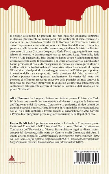 Contents: - Ritagli di pensieri e d'immagini. La filosofia dell'umorismo di Carlo Dossi - Carlo Dossi, le Note Azzurre e la poetica dell'umorismo - L'antico e il moderno, il comico e l'umorismo. Leopardi e Pirandello a confronto - Il risus interruptus e le dinamiche dell'umorismo. Jean Paul e Pirandello - Alterazioni di una bocca che ride: dall'umorismo inconciliato di Theodor Lipps alla risata dianoetica pirandelliana - L'umorismo pirandelliano come vera e propria pratica della decostruzione - Umorismo e frammentazione narrativa: su Quaderni di Serafino Gubbio operatore di Luigi Pirandello - I segni del trauma e le strategie umoristiche nelle novella di Pirandello - Risate pirandelliane come meccanismo di disvelamento - Il fantastico, il riso, l'umorismo, la follia: riflessioni a margine della novella 'Chi fu?' di Luigi Pirandello - Utopia del riso e pragmatica del paradosso. A proposito di una possibilità del riso pirandelliano - Pirandello e Marta Abba alla rappresentazione de La figlia di Jorio - momenti tra l'assurdo e il riso amaro - Le varie forme del riso in Quando si è qualcuno - La ricezione del riso nella critica della commedia Così è (se vi pare) di Pirandello nel primo dopoguerra in Italia e in Polonia - Ridere per disperazione, ridere per cattiveria. Tu ridi di Luigi Pirandello, tra letteratura e cinema. - Incomunicabilità e fiducia nel lettore: il riso umoristico nel teatro di Pirandello e di De Filippo - Il comico nel primo Eduardo De Filippo - Le smorfie gaie e le smorfie tristi di Roberto Bracco - Riso e alterità in due novelle di Pier Maria Rosso di San Secondo: 'Tania', 'Napoli e Konisberga' - 'Egli à creato perché ciò lo divertiva.' Tragedie ridicole di personaggi fuori chiave - Aldo Palazzeschi: l'umorismo come arte di giocare d'anticipo - Il riso dolente del 'saltimbanco dell'anima' - Perelà, Homo ridens di fumo - Il riso e la derisione nel romanzo palazzeschiano La Piramide. Scherzo di cattivo gusto e fuor di luogo - L'irresistibile leggerezza del riso. Una lettura de L'interrogatorio della contessa Maria di Aldo Palazzeschi - Esiste una poesia comica primonovecentesca? Materiali per uno studio del comico in poesia nel primo Novecento - 'Morte ai morti' ovvero 'Accidenti alla serietà': Papini tra Marinetti e Palazzeschi - Le risate di Marinetti, di Palazzeschi e di Luciano Folgore - Il lato Dada del Futurismo: risata e dissacrazione nell'avanguardia fondata da Marinetti - Alberto Savinio ovvero il riso di Mercurio - Bontempelli umorista e L'Eden della tartaruga - Ridere e deridere: forme del riso nella scrittura di Svevo - La sincerità della narrazione. Uno studio su 'Una burla riuscita' di Italo Svevo - Il riso sgangherato. Italo Svevo e l'ironia: un'aggressione giocosamente sublimata - Il teatro di Svevo tra comico e 'sublime rovesciato' - Il riso come terapia: 'Lo specifico del dottor Menghi' di Italo Svevo - Giolona e le altre. Rovesciamento e parodia della donna- angelo nei romanzi di Italo Svevo - Italo Svevo e il riso ben temperato. Appunti sulla 'Novella del buon vecchio e della bella fanciulla' - La presa di coscienza e il pessimismo attraverso l'ironia in La coscienza di Zeno, di Italo Svevo e Memorie postume di Bras Cubas, di Machado de Assis - Dal fantastico al possibile: la lingua scomposta. Umorismo morfologico e sintattico nell'opera di Tommaso Landolfi. - 'I versi sono un vizio osceno'. Ironia, forma e parola della poesia di Tommaso Landolfi - L'assurdo che ride: l'umorismo di Pirandello nei racconti 'Il vanitoso' e 'L'albergo splendido', di Alberto Moravia - Dino Buzzati e la serietà dell'ironia: il mondo attraverso un 'sovvertito divertimento parodico'. - Kosmos: o del riso ermeneutico in Carlo Emilio Gadda - Polli, galli e galline nel cortile di Carlo Emilio Gadda - Il riso di Demetra: ironia, parodia e umorismo in alcune scrittrici italiane durante la Grande Guerra - Il sottilmente umoristico viaggio autunnale di Ercole Patti - Il 'buon umorismo' di Achille Campanile - L'umorismo è il più eminente meccanismo di difesa. Timor sacro di Stefano Pirandello. - La guerra di Flaiano, o l'etica della farsa.