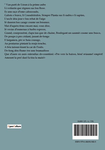 Le Poème du Rhône, en XII chants de Frédéric Mistral est une uvre poétique qui célèbre le fleuve Rhône et les paysages provençaux qui l'entourent. À travers douze chants, Mistral nous emmène dans un voyage épique le long du Rhône, depuis Lyon jusqu'à la mer Méditerranée. Le poème s'ouvre sur le départ des mariniers de Condrieu, une communauté de bateliers audacieux et courageux, qui naviguent sur le fleuve avec leurs radeaux et sapines. Le récit est ponctué de descriptions vivantes des paysages, des traditions locales et des personnages pittoresques rencontrés en chemin. Le protagoniste, le prince d'Orange, fils du roi des Pays-Bas, se joint à l'équipage pour découvrir la Provence et explorer la mystérieuse "flour de Rose", une fleur légendaire symbolisant la beauté et le mystère. Au fil de leur descente, les mariniers et le prince croisent des lieux emblématiques tels que Vienne, Valence et le Pont Saint-Esprit, chacun chargé d'histoire et de légendes. Le poème évoque également des figures historiques et mythiques, comme le comte de Boulogne et Napoléon Bonaparte, qui ont marqué la région. Mistral utilise une langue vive et imagée, mêlant le provençal et le français, pour capturer l'essence de la Provence et du Rhône. Son uvre est un hommage à la culture et aux traditions provençales, tout en explorant des thèmes universels tels que la quête de l'identité, la beauté de la nature et le passage du temps. Le Poème du Rhône est une célébration poétique de la vie fluviale et du passage culturel de la Provence.