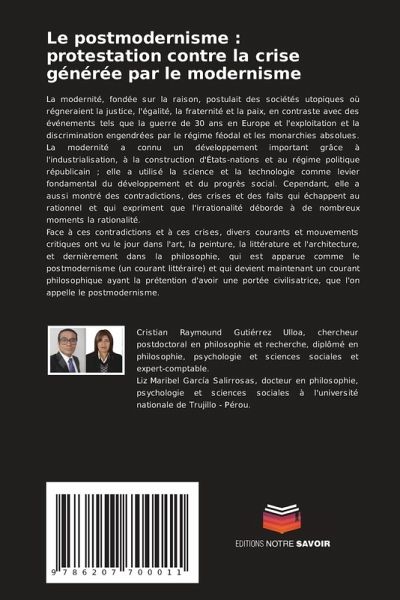 La modernité, fondée sur la raison, postulait des sociétés utopiques où régneraient la justice, l'égalité, la fraternité et la paix, en contraste avec des événements tels que la guerre de 30 ans en Europe et l'exploitation et la discrimination engendrées par le régime féodal et les monarchies absolues. La modernité a connu un développement important grâce à l'industrialisation, à la construction d'États-nations et au régime politique républicain ; elle a utilisé la science et la technologie comme levier fondamental du développement et du progrès social. Cependant, elle a aussi montré des contradictions, des crises et des faits qui échappent au rationnel et qui expriment que l'irrationalité déborde à de nombreux moments la rationalité.Face à ces contradictions et à ces crises, divers courants et mouvements critiques ont vu le jour dans l'art, la peinture, la littérature et l'architecture, et dernièrement dans la philosophie, qui est apparue comme le postmodernisme (un courant littéraire) et qui devient maintenant un courant philosophique ayant la prétention d'avoir une portée civilisatrice, que l'on appelle le postmodernisme.