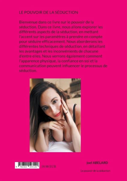 LE POUVOIR DE LA SÉDUCTIONBienvenue dans ce livre sur le pouvoir de la séduction. Dans ce livre, nous allons explorer les différents aspects de la séduction, en mettant l'accent sur les paramètres à prendre en compte pour séduire efficacement. Nous aborderons les différentes techniques de séduction, en détaillant les avantages et les inconvénients de chacune d'entre elles. Nous verrons également comment l'apparence physique, la confiance en soi et la communication peuvent influencer le processus de séduction.