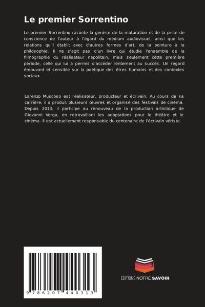 Le premier Sorrentino raconte la genèse de la maturation et de la prise de conscience de l'auteur à l'égard du médium audiovisuel, ainsi que les relations qu'il établit avec d'autres formes d'art, de la peinture à la philosophie. Il ne s'agit pas d'un livre qui étudie l'ensemble de la filmographie du réalisateur napolitain, mais seulement cette première période, celle qui lui a permis d'accéder lentement au succès. Un regard émouvant et sensible sur la poétique des êtres humains et des contextes sociaux.