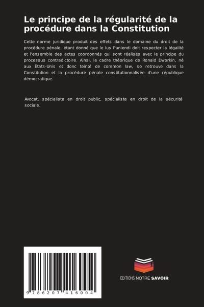 Cette norme juridique produit des effets dans le domaine du droit de la procédure pénale, étant donné que le Ius Puniendi doit respecter la légalité et l'ensemble des actes coordonnés qui sont réalisés avec le principe du processus contradictoire. Ainsi, le cadre théorique de Ronald Dworkin, né aux États-Unis et donc teinté de common law, se retrouve dans la Constitution et la procédure pénale constitutionnalisée d'une république démocratique.