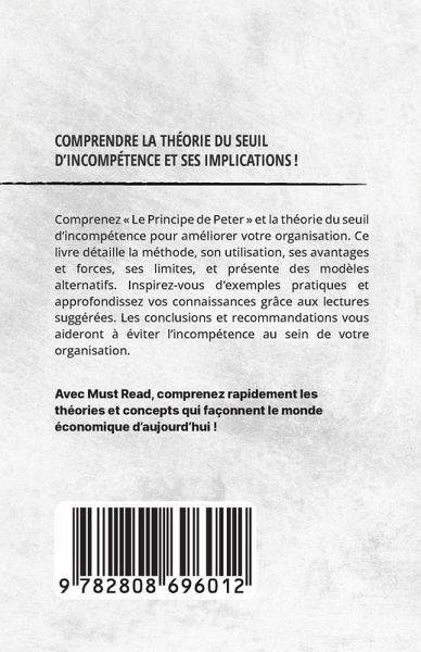 Comprenez "Le Principe de Peter" et la théorie du seuil d'incompétence pour améliorer votre organisation. Ce livre détaille la méthode, son utilisation, ses avantages et forces, ses limites, et présente des modèles alternatifs. Inspirez-vous d'exemples pratiques et approfondissez vos connaissances grâce aux lectures suggérées. Les conclusions et recommandations vous aideront à éviter l'incompétence au sein de votre organisation.