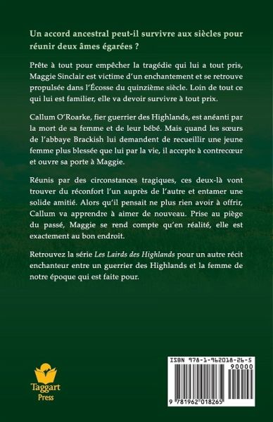Un accord ancestral peut-il survivre aux siècles pour réunir deux âmes égarées ? Prête à tout pour empêcher la tragédie qui lui a tout pris, Maggie Sinclair est victime d'un enchantement et se retrouve propulsée dans l'Écosse du quinzième siècle. Loin de tout ce qui lui est familier, elle va devoir survivre à tout prix. Callum O'Roarke, fier guerrier des Highlands, est anéanti par la mort de sa femme et de leur bébé. Mais quand les surs de l'abbaye Brackish lui demandent de recueillir une jeune femme plus blessée que lui par la vie, il accepte à contrecur et ouvre sa porte à Maggie. Réunis par des circonstances tragiques, ces deux-là vont trouver du réconfort l'un auprès de l'autre et entamer une solide amitié. Alors qu'il pensait ne plus rien avoir à offrir, Callum va apprendre à aimer de nouveau. Prise au piège du passé, Maggie se rend compte qu'en réalité, elle est exactement au bon endroit. Retrouvez la série Les Lairds des Highlands pour un autre récit enchanteur entre un guerrier des Highlands et la femme de notre époque qui est faite pour lui.