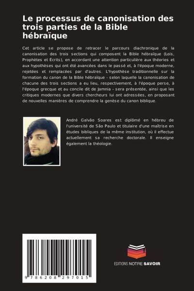 Cet article se propose de retracer le parcours diachronique de la canonisation des trois sections qui composent la Bible hébraïque (Lois, Prophètes et Écrits), en accordant une attention particulière aux théories et aux hypothèses qui ont été avancées dans le passé et, à l'époque moderne, rejetées et remplacées par d'autres. L'hypothèse traditionnelle sur la formation du canon de la Bible hébraïque - selon laquelle la canonisation de chacune des trois sections a eu lieu, respectivement, à l'époque perse, à l'époque grecque et au concile dit de Jamnia - sera présentée, ainsi que les critiques modernes que divers chercheurs lui ont adressées, en proposant de nouvelles manières de comprendre la genèse du canon biblique.