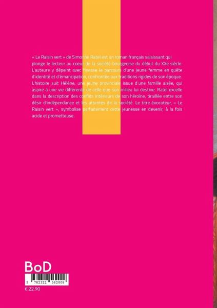 « Le Raisin vert » de Simonne Ratel est un roman français saisissant qui plonge le lecteur au coeur de la société bourgeoise du début du XXe siècle. L'auteure y dépeint avec finesse le parcours d'une jeune femme en quête d'identité et d'émancipation, confrontée aux traditions rigides de son époque. L'histoire suit Hélène, une jeune provinciale issue d'une famille aisée, qui aspire à une vie différente de celle que son milieu lui destine. Ratel excelle dans la description des conflits intérieurs de son héroïne, tiraillée entre son désir d'indépendance et les attentes de la société. Le titre…mehr