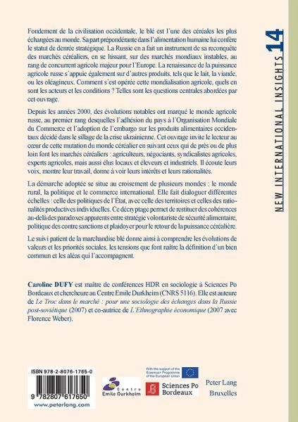Liste des sigles - Illustrations - Preface by Alena Ledeneva - Introduction - Les marchés du blé : de quelques théories et méthodes - La mise en marché des grandes cultures (1990-2018) - La circulation des grains : entre circuit et marché - Traders et experts céréaliers ou la production et maintenance du marché par les intermédiaires - Le marché des interventions d'État : une régulation hybride, opaque et contingente - La sécurité alimentaire et le marché : représentations des acteurs du secteur céréalier dans la Russie des années 1990-2010 - Conclusion - Bibliographie - Annexe 1 : Liste des entretiens effectués et utilisés pour la recherche - Annexe 2 : L'offre et la demande d'un produit agricole saisonnier sur le marché mondial - Annexe 3 : La régulation des grains ou la « tyrannie des céréales » en URSS ? (Kaplan, 2012) : l'histoire de la Russie révolutionnaire