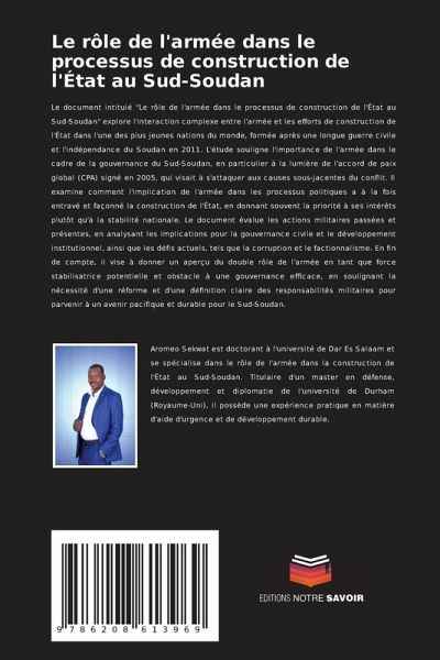 Le document intitulé "Le rôle de l'armée dans le processus de construction de l'État au Sud-Soudan" explore l'interaction complexe entre l'armée et les efforts de construction de l'État dans l'une des plus jeunes nations du monde, formée après une longue guerre civile et l'indépendance du Soudan en 2011. L'étude souligne l'importance de l'armée dans le cadre de la gouvernance du Sud-Soudan, en particulier à la lumière de l'accord de paix global (CPA) signé en 2005, qui visait à s'attaquer aux causes sous-jacentes du conflit. Il examine comment l'implication de l'armée dans les processus politiques a à la fois entravé et façonné la construction de l'État, en donnant souvent la priorité à ses intérêts plutôt qu'à la stabilité nationale. Le document évalue les actions militaires passées et présentes, en analysant les implications pour la gouvernance civile et le développement institutionnel, ainsi que les défis actuels, tels que la corruption et le factionnalisme. En fin de compte, il vise à donner un aperçu du double rôle de l'armée en tant que force stabilisatrice potentielle et obstacle à une gouvernance efficace, en soulignant la nécessité d'une réforme et d'une définition claire des responsabilités militaires pour parvenir à un avenir pacifique et durable pour le Sud-Soudan.