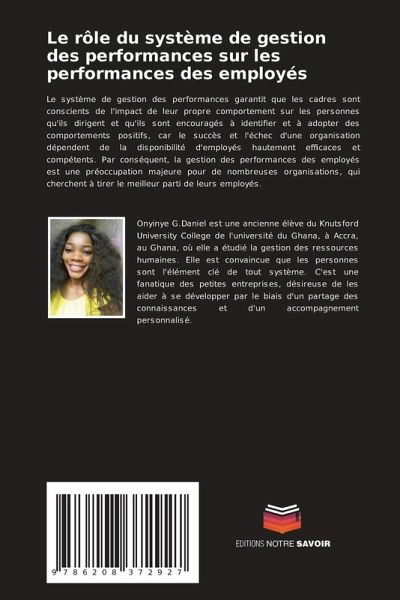 Le système de gestion des performances garantit que les cadres sont conscients de l'impact de leur propre comportement sur les personnes qu'ils dirigent et qu'ils sont encouragés à identifier et à adopter des comportements positifs, car le succès et l'échec d'une organisation dépendent de la disponibilité d'employés hautement efficaces et compétents. Par conséquent, la gestion des performances des employés est une préoccupation majeure pour de nombreuses organisations, qui cherchent à tirer le meilleur parti de leurs employés.