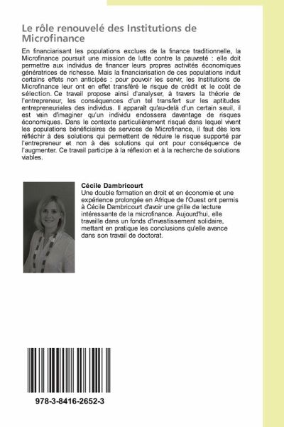 Une double formation en droit et en économie et une expérience prolongée en Afrique de l'Ouest ont permis à Cécile Dambricourt d'avoir une grille de lecture intéressante de la microfinance. Aujourd'hui, elle travaille dans un fonds d'investissement solidaire, mettant en pratique les conclusions qu'elle avance dans son travail de doctorat.