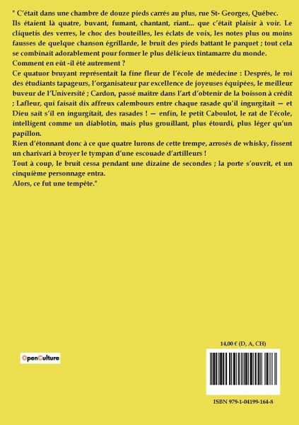 "Le Roi des Étudiants" d'Eugène Dick est un roman qui plonge le lecteur dans l'univers tumultueux des étudiants en médecine de Québec. L'histoire s'ouvre sur une scène de camaraderie bruyante où quatre étudiants, Després, Cardon, Lafleur, et le petit Caboulot, se retrouvent pour une soirée de beuverie. L'arrivée de Paul Champfort, un étudiant apprécié pour sa bonne humeur et son intelligence, vient troubler cette ambiance festive. Champfort, bien que présent physiquement, est mentalement accablé par un amour non partagé pour sa cousine Laure Privat, qui est sur le point d'épouser un homme nommé Lapierre. Després, le chef du groupe, perçoit la tristesse de Champfort et décide de l'aider. Il révèle que Lapierre est un homme indigne, traître pour ses actes passés, et promet de démasquer ses réelles intentions. Le récit se développe autour des tentatives de Després pour empêcher le mariage de Laure avec Lapierre, tout en dévoilant son propre passé douloureux lié à ce dernier. À travers des dialogues intenses et des révélations surprenantes, le roman explore les thèmes de l'amour, de la trahison, et de la loyauté, tout en peignant un tableau vivant de la vie étudiante au XIXe siècle.
