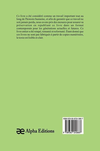 Le rouge et le noir: chronique du XIXe siècle" est un livre classique, qui a eu une valeur significative tout au long de l'histoire, et pour garantir que sa sagesse intemporelle ne soit jamais perdue, Alpha Editions l'a soigneusement préservé en le republiant dans un format moderne et accessible aux générations présentes et futures. Soigneusement reformaté, retapé , et nouvellement conçue, cette édition offre un texte clair et lisible, sans copies numérisées de l'uvre originale, Alpha Editions se consacre à insuffler une nouvelle vie aux livres anciens et classiques, rendant ces trésors littéraires à nouveau disponibles pour les lecteurs qui chérissent l'histoire. culture et savoir intemporel.