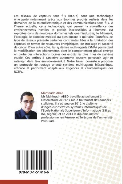 Les réseaux de capteurs sans fils (RCSFs) sont une technologie émergente notamment grâce aux énormes progrès réalisés dans les domaines de la microélectronique et des communications sans fils. A l heure actuelle, cette technologie, qui permet la surveillance des environnements hostiles et parfois inaccessibles à l homme, est exploitée dans de nombreux domaines tels que l industrie, le bâtiment, l écologie, le domaine médical ou bien encore le militaire. Toutefois, ce type de réseaux présente certaines contraintes liées à la limitation des capteurs en termes de ressources énergétiques, de stockage et capacité de calcul. D un autre côté, les systèmes multi-agents (SMA) permettent la modélisation des phénomènes dont le comportement global émerge en partie des interactions locales des entités les plus fines du système étudié. Ces entités à caractère autonome peuvent percevoir, agir et interagir dans leur environnement. E Notre travail consiste à proposer un protocole de routage orienté système multi-agents hiérarchique, efficace et performant adapté aux exigences et caractéristiques des RCSFs.