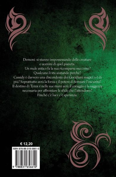 Demoni si stanno impossessando delle creature e uomini di Tyrax, un male antico fa la sua ricomparsa, ma come? Deon è lui l'artefice di tutto, o è solo un burattino? Cassidy è davvero una discendente dei Goridiani magici o è di più? Soprattutto avrà la forza e il potere di fermare l'oscurità? Il destino di Tyrax è nelle sue mani e non solo di Tyrax. Farà la scelta giusta?