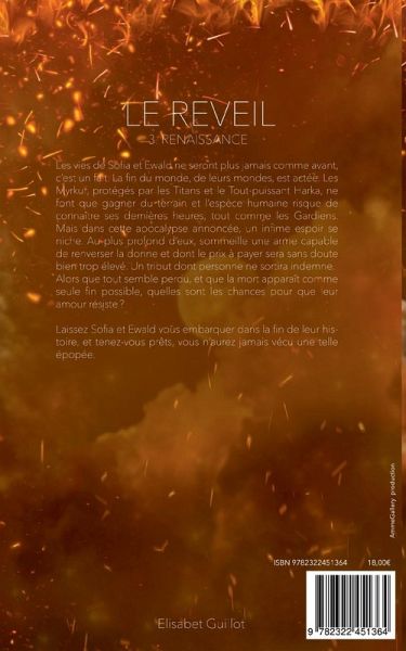 Les vies de Sofia et Ewald ne seront jamais comme avant, c'est un fait. La fin du monde, de leurs mondes, est actée. Les Myrkur, protégés par les Titans et le Tout-Puissant Harka, ne font que gagner du terrain et l'espèce humaine risque de connaître ses dernières heures, tout comme les Gardiens. Mais dans cette apocalypse annoncée, un infime espoir se niche. Au plus profond d'eux, sommeille une arme capable de renverser la donne et dont le prix à payer pour s'en servir sera bien trop élevé. Un tribut dont personne ne sortira indemne. Alors que tout semble perdu, et que la mort apparaît comme seule fin possible, quelles sont les chances pour que leur amour résiste?Laissez Sofia et Ewald vous embarquer dans la fin de leur histoire, et tenez-vous prêts, vous n'aurez jamais connu pareille épopée.