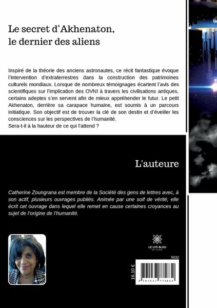 Inspiré de la théorie des anciens astronautes, ce récit fantastique évoque l¿intervention d¿extraterrestres dans la construction des patrimoines culturels mondiaux. Lorsque de nombreux témoignages écartent l¿avis des scientifiques sur l¿implication des OVNI à travers les civilisations antiques, certains adeptes s¿en servent afin de mieux appréhender le futur. Le petit Akhenaton, derrière sa carapace humaine, est soumis à un parcours initiatique. Son objectif est de trouver la clé de son destin et d¿éveiller les consciences sur les perspectives de l¿humanité. Sera-t-il à la hauteur de ce qui l¿attend ?