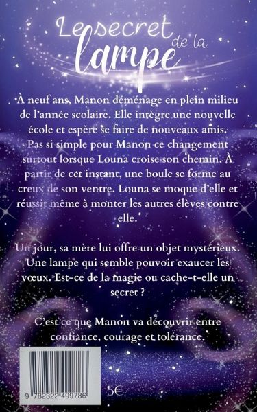 A neuf ans, Manon déménage en plein milieu d'année scolaire. Elle intègre une nouvelle école et espère se faire de nouveaux amis.Pas si simple pour Manon ce changement surtout lorsque Louna croise son chemin. A partir de cet instant, une boule se forme au creux de son ventre. Louna se moque d'elle et réussit à monter les autres élèves contre elle.Un jour, sa mère lui offre un objet mystérieux. Une lampe qui semble pouvoir exaucer les voeux. Est-ce de la magie ou cache-t-elle un secret?C'est ce que Manon va découvrir entre confiance, courage et tolérance.