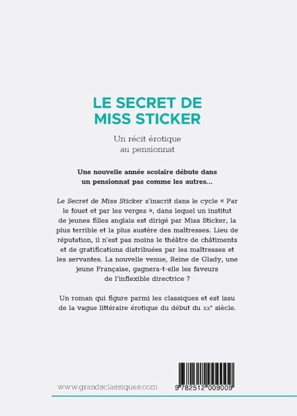 Une nouvelle année scolaire débute dans un pensionnat pas comme les autres... POUR UN PUBLIC AVERTI. Le Secret de Miss Sticker s'inscrit dans le cycle « Par le fouet et par les verges », dans lequel un institut de jeunes filles anglais est dirigé par Miss Sticker, la plus terrible et la plus austère des maîtresses. Lieu de réputation, il n'est pas moins le théâtre de châtiments et de gratifications distribuées par les maîtresses et les servantes. La nouvelle venue, Reine de Glady, une jeune Française, gagnera-t-elle les faveurs de l'inflexible directrice ? Un roman qui figure parmi les classiques et est issu de la vague littéraire érotique du début du XXe siècle. EXTRAIT La sévérité de l¿institution de miss Sticker avait une légitime réputation. La bonne éducation, qui y complétait l¿instruction, donnait au monde des jeunes filles prudes et vertueuses, telles que le comporte l¿excellente renommée de la Grande, la très Grande Angleterre. Aussi les meilleures familles du Royaume-Uni y envoyaient-elles leurs enfants. Jamais rien de shocking ne leur avait frappé l¿oreille. Savoir observer son maintien, ne pas s¿émouvoir des sottises d¿autrui, toutes ces jeunesses, sorties de la maison Sticker, s¿en faisaient un article de loi. Du commencement à la fin des études, elles s¿appliquaient à leurs devoirs, se soumettant aux punitions corporelles auxquelles on les habituait, et conservant une impassibilité absolue sur tout ce qui n¿était pas le but à atteindre. Cependant l¿arrivée de Reine de Glady apporta une certaine exaltation qui, pour être confinée dans la division où elle se trouvait, ne menaçait pas moins de se propager de proche en proche et de modifier le caractère et le tempérament de ces froides péronnelles. Dans un panier rempli de fruits, si un seul est contaminé, le reste, aussi nombreuses que soient les unités, ne tarde pas à se gâter. En affaire de m¿urs, on peut l¿affirmer sans crainte, dans le milieu le plus revêche, s¿il se glisse un débauché convaincu, peu à peu la morale s¿affaiblit, et qui hypocritement, qui franchement, nul n¿échappe à l¿attirance de la débauche. À plus forte raison, dans une réunion de filles et de fillettes, de nature en général curieuses et gourmandes, si la luxure mord un c¿ur, bientôt tous les autres le seront, et des plus jeunes aux plus âgées, toutes chercheront à connaître la sensation du frisson. À PROPOS DE L'AUTEUR Alphonse Momas, né en 1846, fonctionnaire à la préfecture de la Seine et écrivain français, était l'un des rédacteurs les plus actifs dans la littérature érotique du siècle dernier. Outre Tap-Tap, il écrivit sous divers autres pseudonymes : Le Nismois, Fuckwell, L'Érotin ou encore Un Journaliste du Siècle dernier. Cette multiplication de pseudonymes peut s¿expliquer par le fait que la littérature érotique, comme d'autres productions du début du XXe siècle, a connu un début de taylorisation qui tendait à en faire une industrie spécifique soumise aux lois du marché, avec ses procédés standardisés et ses auteurs payés au forfait par l'éditeur. À PROPOS DE LA COLLECTION Retrouvez les plus grands noms de la littérature érotique dans notre collection Grands classiques érotiques. Autrefois poussés à la clandestinité et relégués dans « l'Enfer des bibliothèques », les auteurs de ces ¿uvres incontournables du genre sont aujourd'hui reconnus mondialement. Du Marquis de Sade à Alphonse Momas et ses multiples pseudonymes, en passant par le lyrique Alfred de Musset ou la féministe Renée Dunan, les Grands classiques érotiques proposent un catalogue complet et varié qui contentera tant les novices que les connaisseurs.