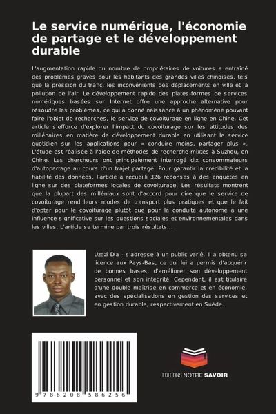 L'augmentation rapide du nombre de propriétaires de voitures a entraîné des problèmes graves pour les habitants des grandes villes chinoises, tels que la pression du trafic, les inconvénients des déplacements en ville et la pollution de l'air. Le développement rapide des plates-formes de services numériques basées sur Internet offre une approche alternative pour résoudre les problèmes, ce qui a donné naissance à un phénomène pouvant faire l'objet de recherches, le service de covoiturage en ligne en Chine. Cet article s'efforce d'explorer l'impact du covoiturage sur les attitudes des millénaires en matière de développement durable en utilisant le service quotidien sur les applications pour « conduire moins, partager plus ». L'étude est réalisée à l'aide de méthodes de recherche mixtes à Suzhou, en Chine. Les chercheurs ont principalement interrogé dix consommateurs d'autopartage au cours d'un trajet partagé. Pour garantir la crédibilité et la fiabilité des données, l'article a recueilli 326 réponses à des enquêtes en ligne sur des plateformes locales de covoiturage. Les résultats montrent que la plupart des milléniaux sont d'accord pour dire que le service de covoiturage rend leurs modes de transport plus pratiques et que le fait d'opter pour le covoiturage plutôt que pour la conduite autonome a une influence significative sur les questions sociales et environnementales dans les villes. L'article se termine par trois résultats...