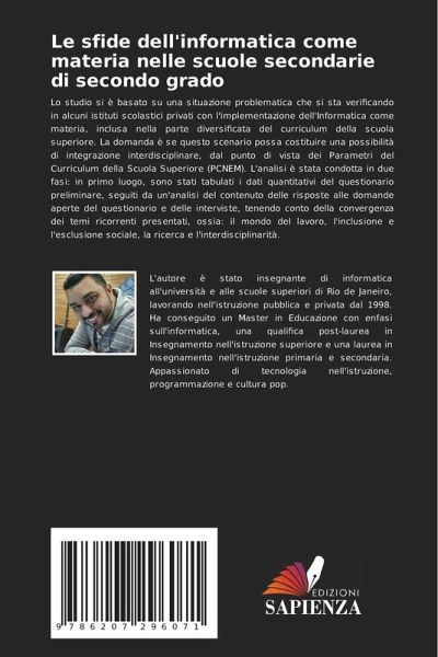 Lo studio si è basato su una situazione problematica che si sta verificando in alcuni istituti scolastici privati con l'implementazione dell'Informatica come materia, inclusa nella parte diversificata del curriculum della scuola superiore. La domanda è se questo scenario possa costituire una possibilità di integrazione interdisciplinare, dal punto di vista dei Parametri del Curriculum della Scuola Superiore (PCNEM). L'analisi è stata condotta in due fasi: in primo luogo, sono stati tabulati i dati quantitativi del questionario preliminare, seguiti da un'analisi del contenuto delle risposte alle domande aperte del questionario e delle interviste, tenendo conto della convergenza dei temi ricorrenti presentati, ossia: il mondo del lavoro, l'inclusione e l'esclusione sociale, la ricerca e l'interdisciplinarità.