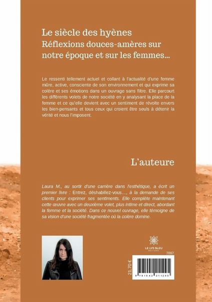 Le ressenti tellement actuel et collant à l'actualité d'une femme mûre, active, consciente de son environnement et qui exprime sa colère et ses émotions dans un ouvrage sans filtre. Elle parcourt les différents volets de notre société en y analysant la place de la femme et ce qu'elle devient avec un sentiment de révolte envers les bien-pensants et tous ceux qui croient être seuls à détenir la vérité et nous l'imposent.