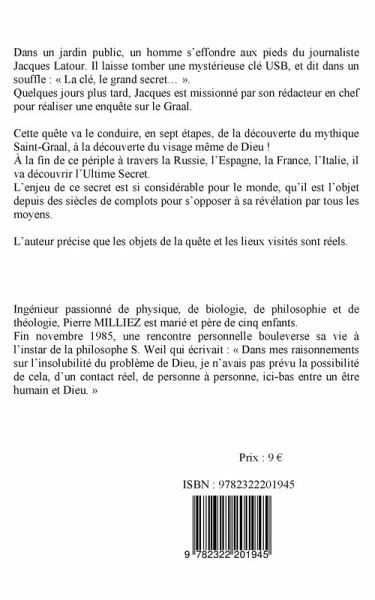 Cette quête va le conduire, en sept étapes, de la découverte au mythique Saint-Graal, à la découverte du visage même de Dieu !