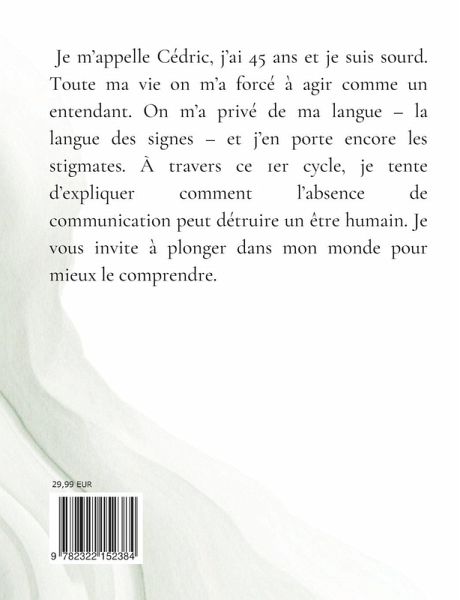 Je m'appelle Cédric, j'ai 45 ans et je suis sourd. Toute ma vie, on m'a forcé à agir comme un entendant. On m'a privé de ma langue, la langue des signes et j'en porte encore les stigmates. A travers ce 1er cycle, je tente expliquer comment l'absence de communication peut détruire un être humain. Je vous invite a plonger dans mon monde pour mieux le comprendre.