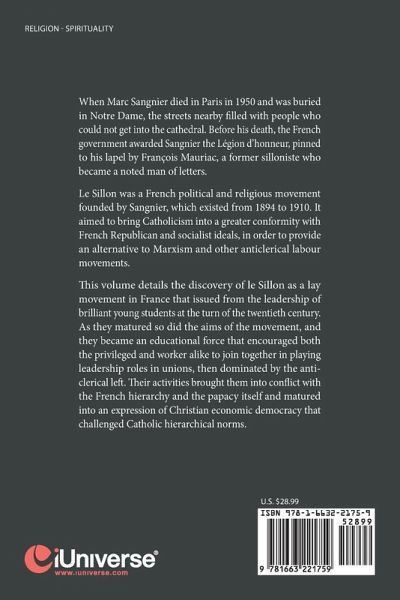 When Marc Sangnier died in Paris in 1950 and was buried in Notre Dame, the streets nearby filled with people who could not get into the cathedral. Before his death, the French government awarded Sangnier the Légion d'honneur, pinned to his lapel by François Mauriac, a former silloniste who became a noted man of letters. Le Sillon was a French political and religious movement founded by Sangnier, which existed from 1894 to 1910. It aimed to bring Catholicism into a greater conformity with French Republican and socialist ideals, in order to provide an alternative to Marxism and other anticlerical labour movements. This volume details the discovery of le Sillon as a lay movement in France that issued from the leadership of brilliant young students at the turn of the twentieth century. As they matured so did the aims of the movement, and they became an educational force that encouraged both the privileged and worker alike to join together in playing leadership roles in unions, then dominated by the anti-clerical left. Their activities brought them into conflict with the French hierarchy and the papacy itself and matured into an expression of Christian economic democracy that challenged Catholic hierarchical norms.