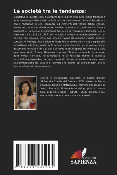 L'obiettivo di questo libro è comprendere la presenza delle mode francesi e americane negli abiti e nei modi di vestire delle donne d'élite di Fortaleza e come l'adozione di stili, tendenze ed elementi del vestire (abiti, scarpe, accessori, tessuti e simili) sotto direttive straniere si correli con la Cultura Materiale e i processi di Distinzione Sociale e di Traduzione Culturale visti a Fortaleza tra il 1925 e il 1947. Per fare ciò, analizziamo annunci pubblicitari di esercizi commerciali, testi, dati ufficiali, notizie da rubriche sociali, bandi di concorsi di bellezza, illustrazioni e fotografie di donne della classe agiata che si adattano alle linee guida della moda, appartenenti a un ampio corpus di documenti. In tutto il libro si parla di moda e del rapporto tra individui e abiti negli anni Venti, Trenta, Quaranta e prima. Si ripercorrono le esperienze della moda francese, nordamericana e di Fortaleza rivolte al pubblico femminile corrispondenti a questo periodo, tessendo contemporaneamente una connessione tra queste e l'universo di eventi, su scala macro, che le hanno influenzate notevolmente.