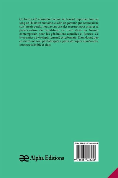 Le songe d'une femme: roman familier, est un livre classique et rare, qui a été considéré comme important tout au long de l'histoire de l'humanité, et pour que cet ouvrage ne soit jamais oublié, chez Alpha Editions, nous avons fait des efforts pour sa préservation en rééditant ce livre dans un format moderne pour les générations présentes et futures. . Tout ce livre a été reformaté, retapé et repensé. Ces livres ne sont pas constitués de copies numérisées de leur ¿uvre originale et leur texte est donc clair et lisible. Ce livre remarquable s'inscrit dans les genres de Language and Literatures, Romance literatures
