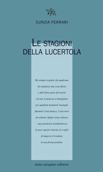 Il libro Le stagioni della lucertola, curato da Vincenzo Guarracino, comprende due saggi critici, uno di Carlo Bo e uno di Mario De Micheli, oltre un brano di Salvatore Quasimodo ed è una raccolta di tutte le poesie selezionate, a partire dalle prime del 1965 (La giornata provvisoria - che vinse l'allora famoso Premio Cervia), sino all'inedito L'autunno della metratura, 2020) Das Urheberrecht an bibliographischen und produktbeschreibenden Daten und an den bereitgestellten Bildern liegt bei Informazioni Editoriali, I.E. S.r.l., oder beim Herausgeber oder demjenigen, der die Genehmigung erteilt hat. Alle Rechte vorbehalten.