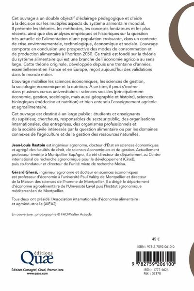 Avec pour double objectif d'aider à la décision et de donner un éclairage pédagogique sur les multiples aspects du système alimentaire mondial, cet ouvrage présente les théories, les méthodes, les concepts fondateurs et les plus récents, ainsi que des analyses empiriques et historiques sur la question très actuelle de l'alimentation d'une population croissante, dans un contexte de crise technologique, économique et sociale. Une prospective des modes de consommation et de production alimentaire à l'horizon 2050 est proposée.