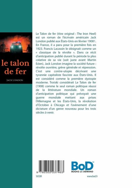 Le Talon de fer (titre original : The Iron Heel) est un roman de l'écrivain américain Jack London publié aux États-Unis en février 19081. En France, il a paru pour la première fois en 1923. Francis Lacassin le désignait comme un « classique de la révolte ». Dans ce récit d'anticipation publié durant la période la plus créative de sa vie (soit juste avant Martin Eden), Jack London imagine la société future : révolte ouvrière, grève générale et répression. C'est une contre-utopie décrivant une tyrannie capitaliste fasciste aux États-Unis. Il est considéré comme la première dystopie moderne.…mehr