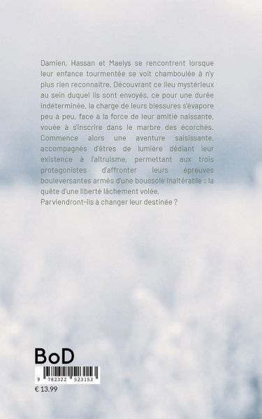 Damien, Hassan et Maelys se rencontrent lorsque leur enfance tourmentée se voit chamboulée à n'y plus rien reconnaitre. Découvrant ce lieu mystérieux au sein duquel ils sont envoyés, ce pour une durée indéterminée, la charge de leurs blessures s'évapore peu à peu, face à la force de leur amitié naissante, vouée à s'inscrire dans le marbre des écorchés. Commence alors une aventure saisissante, accompagnés d'êtres de lumière dédiant leur existence à l'altruisme, permettant aux trois protagonistes d'affronter leurs épreuves bouleversantes armés d'une boussole inaltérable : la quête d'une liberté lâchement volée. Parviendront-ils à changer leur destinée ?