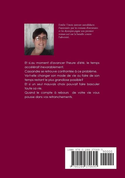 Et si, au moment d'avancer l'heure en été,le temps accélérait inexorablement. Cassandre se retrouve confrontée à ce problème. Va-t-elle changer son mode de vie ou faire de son temps restant le plus grandiose possible? Et si un seul mauvais choix pouvait faire basculer votre vie entière ?