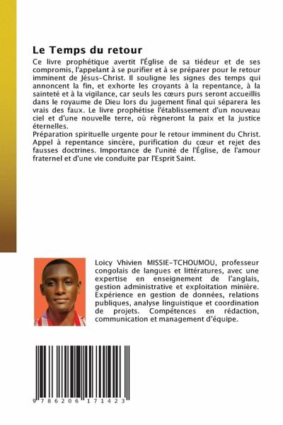 Ce livre prophétique avertit l'Église de sa tiédeur et de ses compromis, l'appelant à se purifier et à se préparer pour le retour imminent de Jésus-Christ. Il souligne les signes des temps qui annoncent la fin, et exhorte les croyants à la repentance, à la sainteté et à la vigilance, car seuls les coeurs purs seront accueillis dans le royaume de Dieu lors du jugement final qui séparera les vrais des faux. Le livre prophétise l'établissement d'un nouveau ciel et d'une nouvelle terre, où règneront la paix et la justice éternelles.Préparation spirituelle urgente pour le retour imminent du Christ. Appel à repentance sincère, purification du coeur et rejet des fausses doctrines. Importance de l'unité de l'Église, de l'amour fraternel et d'une vie conduite par l'Esprit Saint.