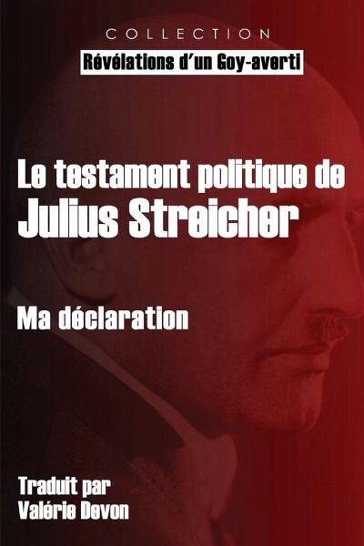 Par bêtise, malice et lâcheté, certains de mes contemporains ont cru qu'ils pouvaient et même devaient rabaisser et déformer autant le contenu que la forme de 25 ans de travail de sensibilisation, que j'ai fait verbalement et par écrit. Le plus souvent, ces critiques n'ont pas formé leur jugement sur la base de leurs propres connaissances, mais plutôt grâce au babillage obligeant de l'opinion d'un autre. Ces notes concernent la période la plus difficile que le peuple allemand ait eu à vivre et sont destinées à susciter la réflexion de ces contemporains et juges douteux ainsi qu'à tous ceux qui veulent les connaitre. Mondorf au Luxembourg, Maison des détenus, Été 1945. Julius Streicher.