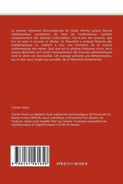 Le premier théorème d'incomplétude de Gödel affirme qu'une théorie mathématique permettant de faire de l'arithmétique contient nécessairement des énoncés indécidables, c'est-à-dire des énoncés que l'on ne peut ni prouver ni réfuter. Ce théorème a marqué l'histoire des mathématiques en mettant à jour une limitation de la science mathématique elle-même. Quel que soit le système d'axiomes choisi, nous savons désormais qu'il existe nécessairement des énoncés mathématiques dont la vérité est inaccessible. Cet ouvrage présente une démonstration, qui se veut aussi simple que possible, de ce théorème fondamental.