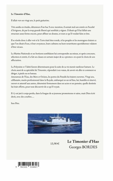 Ce recueil, cet éclair de vie a été condensé par la peine d'un père, apprenant au téléphone un dimanche matin, le décès de son enfant de vingt ans. Chaque nuit, durant des années, ces lignes ont été écrites par un esprit torturé, peiné, effondré, des nuits de solitude face au néant. J'ai essayé de retranscrire des milliers d'images, de sensations et descriptions de lieux précis ou supposés mais toujours réels. Affecté sur un navire patrouilleur de la marine, ce fils appliquait les règles et normes apprises dans son rôle de timonier. Sans mercantilisme aucun, ce livre est destiné aux âmes en peine, par solidarité d'abord, en empathie ensuite, pour avoir vécu ce même drame irréel et intemporel.